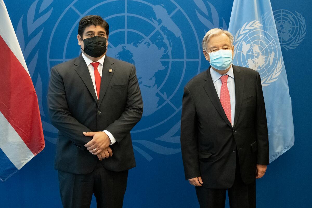 Secretary-General António Guterres (right) meets with Carlos Alvarado Quesada, President of the Republic of Costa Rica.
