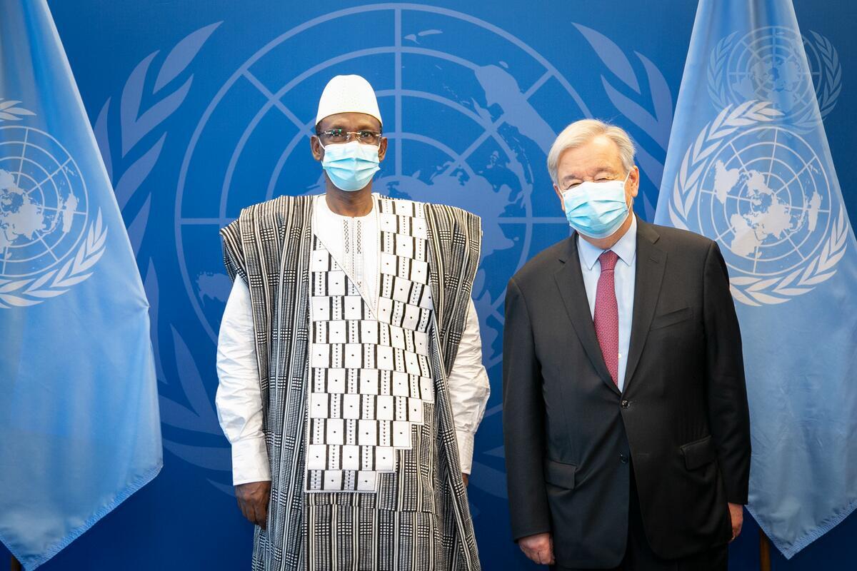 Secretary-General António Guterres (right) meets with Choguel Kokalla Maïga, Prime Minister and Head of the Government of the Republic of Mali.