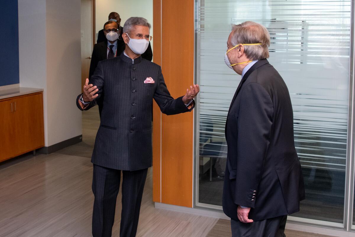 Secretary-General António Guterres (right) meets with Subrahmanyam Jaishankar, Minister for External Affairs of the Republic of India.