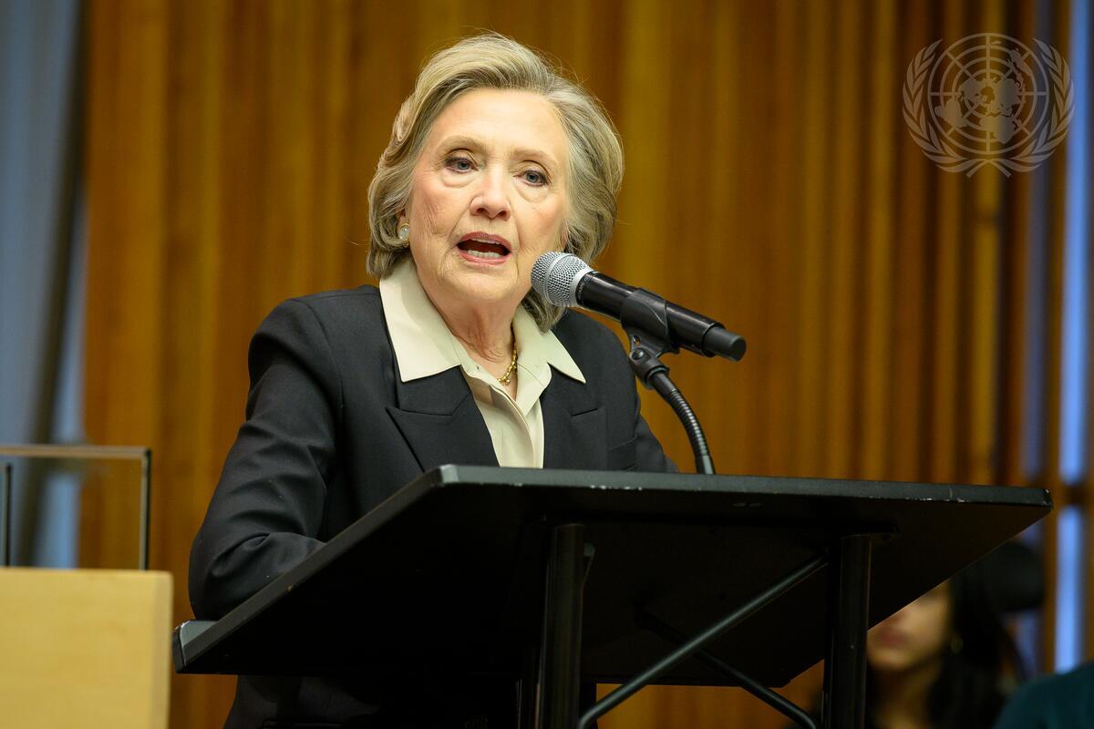 Hillary Clinton, 67th Secretary of State of the United States and Former First Lady, delivers a keynote address during the event held to commemorate the 15-Year anniversary of the establishment of the mandate on Sexual Violence in Conflict.