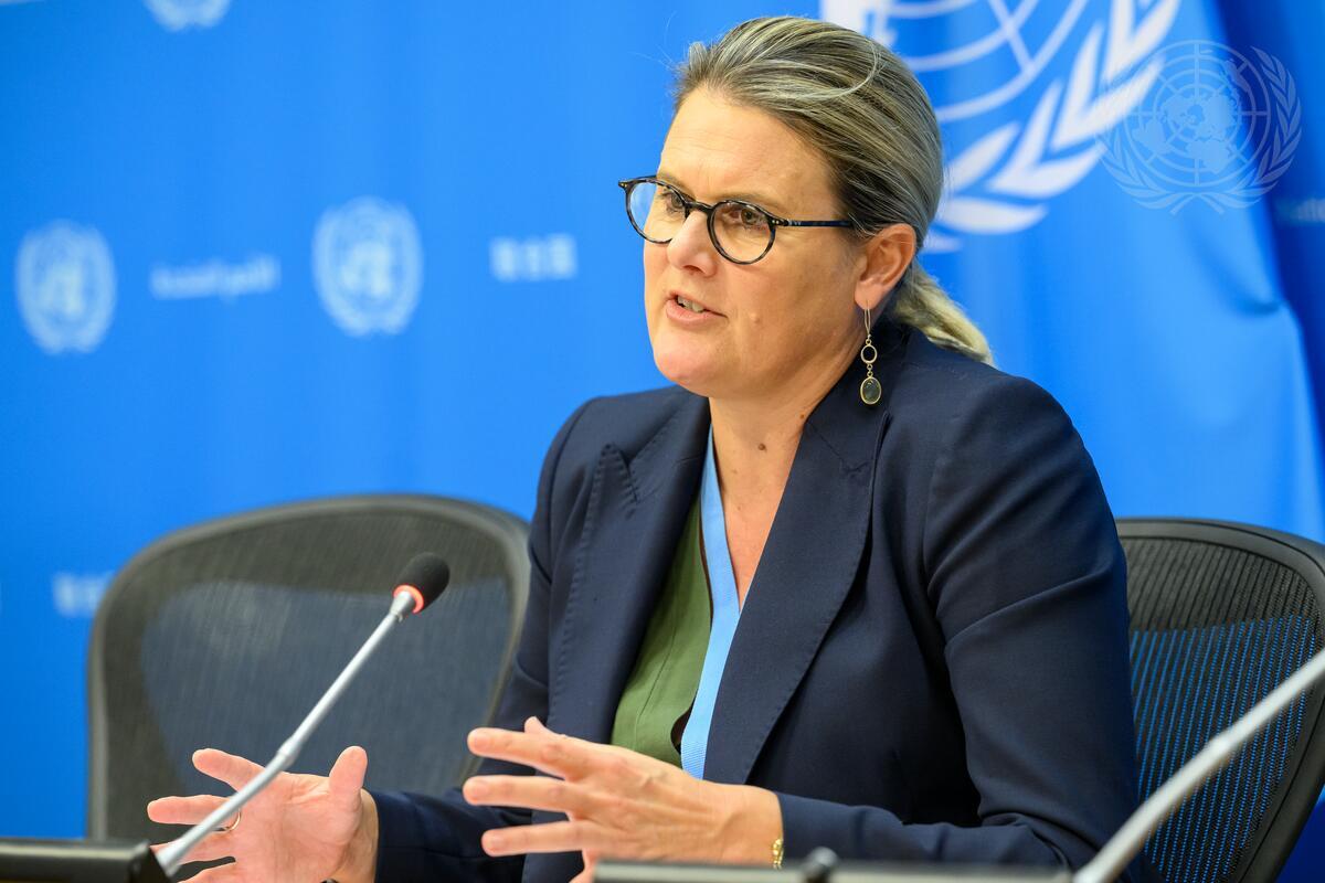 Alice Jill Edwards, UN Special Rapporteur on torture and other cruel, inhuman or degrading treatment or punishment, briefs reporters at UN Headquarters.