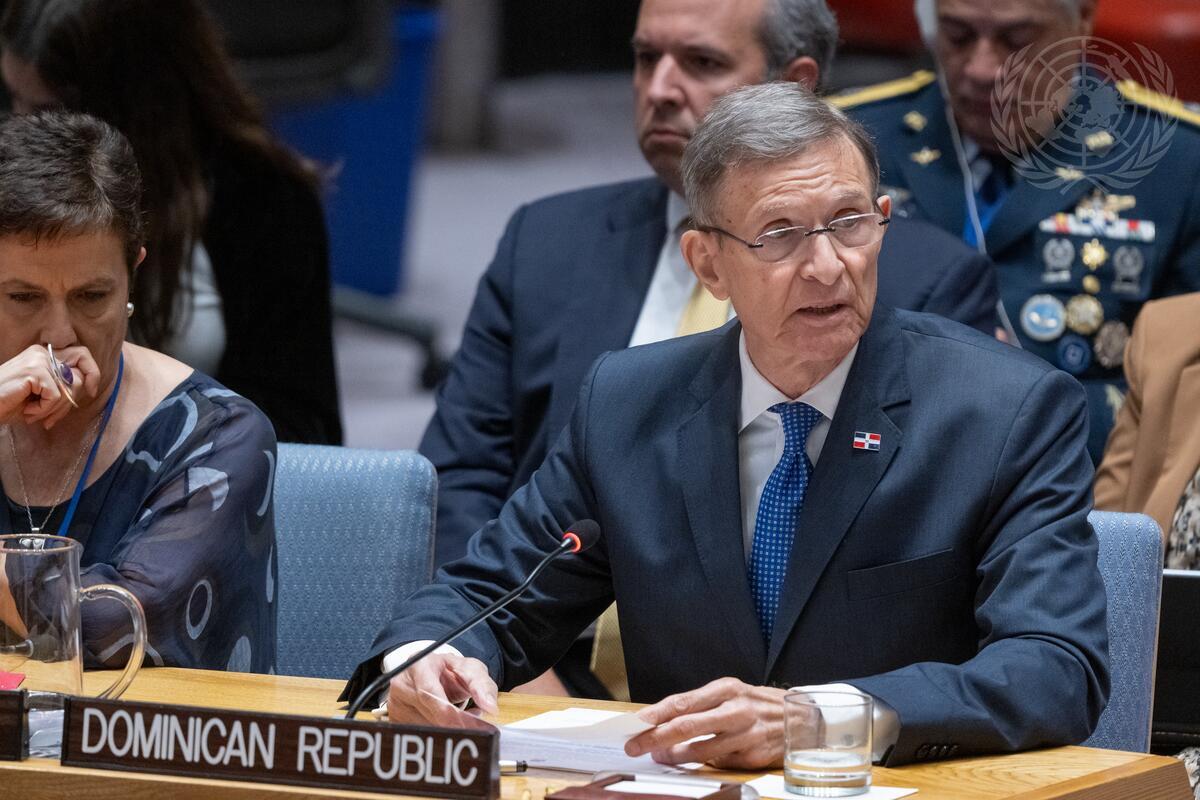 Roberto Álvarez Gil, Minister for Foreign Affairs of the Dominican Republic, addresses the Security Council meeting on the question concerning Haiti. The Council heard a report of the Secretary-General on the United Nations Integrated Office in Haiti (BINUH).