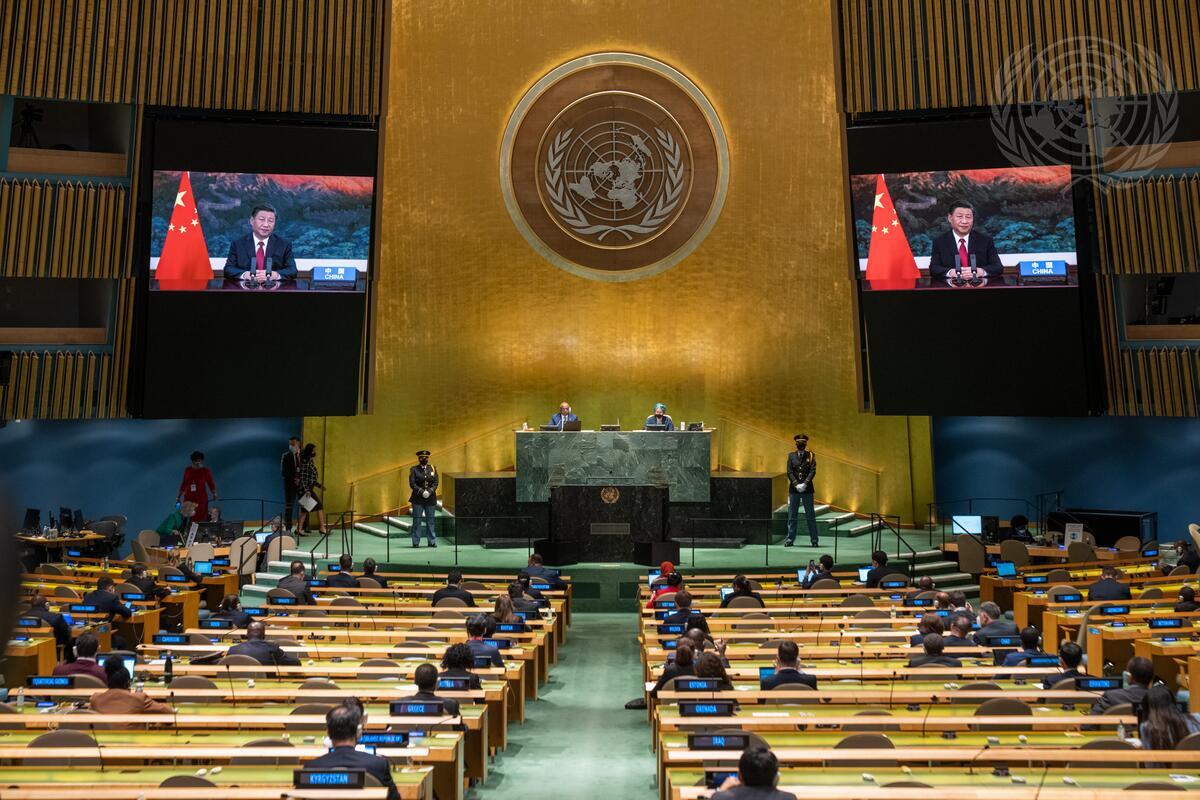Xi Jinping (on screens), President of the People’s Republic of China, addresses the general debate of the General Assembly’s seventy-sixth session.