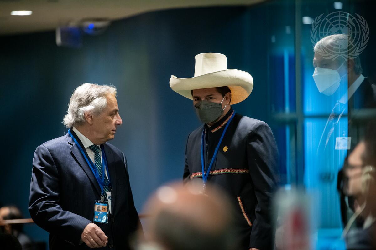 Pedro Castillo Terrones (centre), President of Peru, attending the first day of the general debate of the General Assembly's seventy-sixth session.