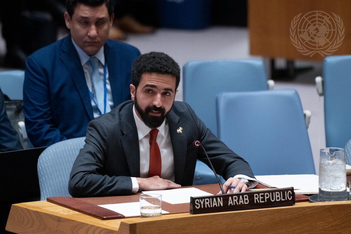 Ibrahim Olabi, Permanent Representative of the Syrian Arab Republic to the United Nations, addresses the Security Council meeting on threats to international peace and security, where the council unanimously renewed the mandate of the United Nations Disengagement Observer Force (UNDOF).