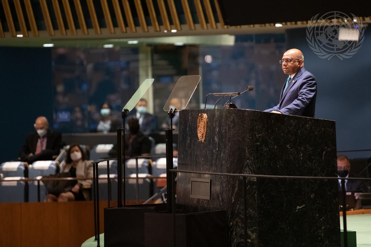 Abdulla Shahid, President of the seventy-sixth session of the United Nations General Assembly, addresses the general debate of the General Assembly’s seventy-sixth session.