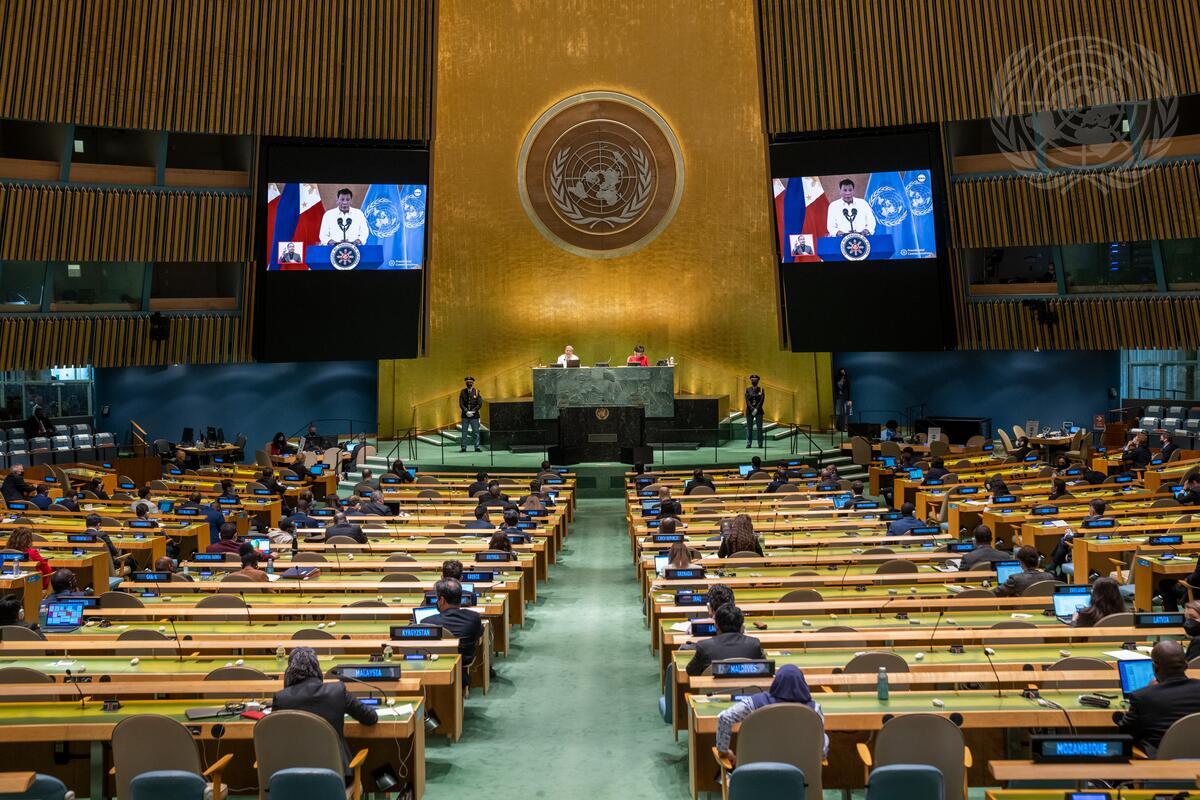 Rodrigo Roa Duterte (on screens), President of the Republic of the Philippines, addresses the general debate of the General Assembly’s seventy-sixth session.