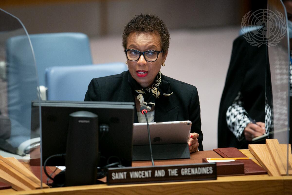 Inga Rhonda King, Permanent Representative of Saint Vincent and the Grenadines to the United Nations, addresses the Security Council meeting on maintenance of international peace and security on the theme Climate and Security.