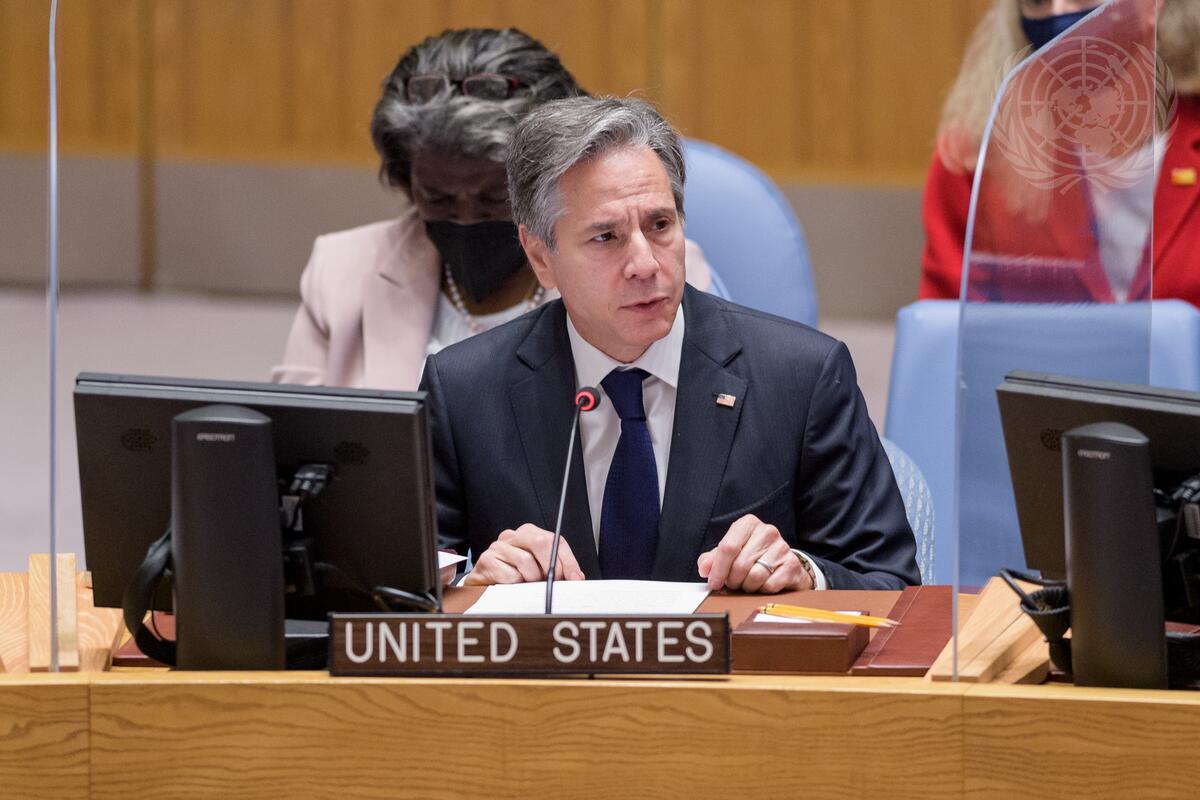 Antony J. Blinken, Secretary of State of the United States of America, addresses the Security Council meeting on maintenance of international peace and security on the theme Climate and Security.