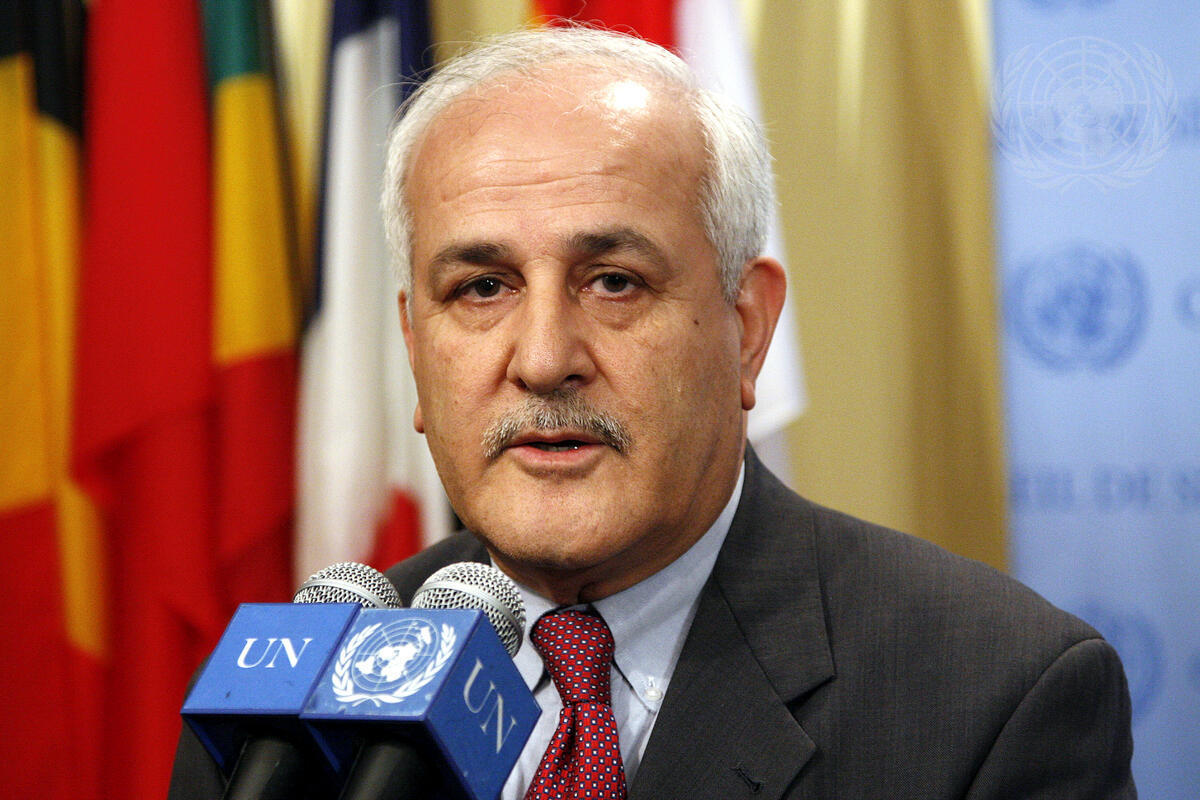 Riyad H. Mansour, Permanent Observer of Palestine to the United Nations, speaks to correspondents outside the Security Council Chamber.