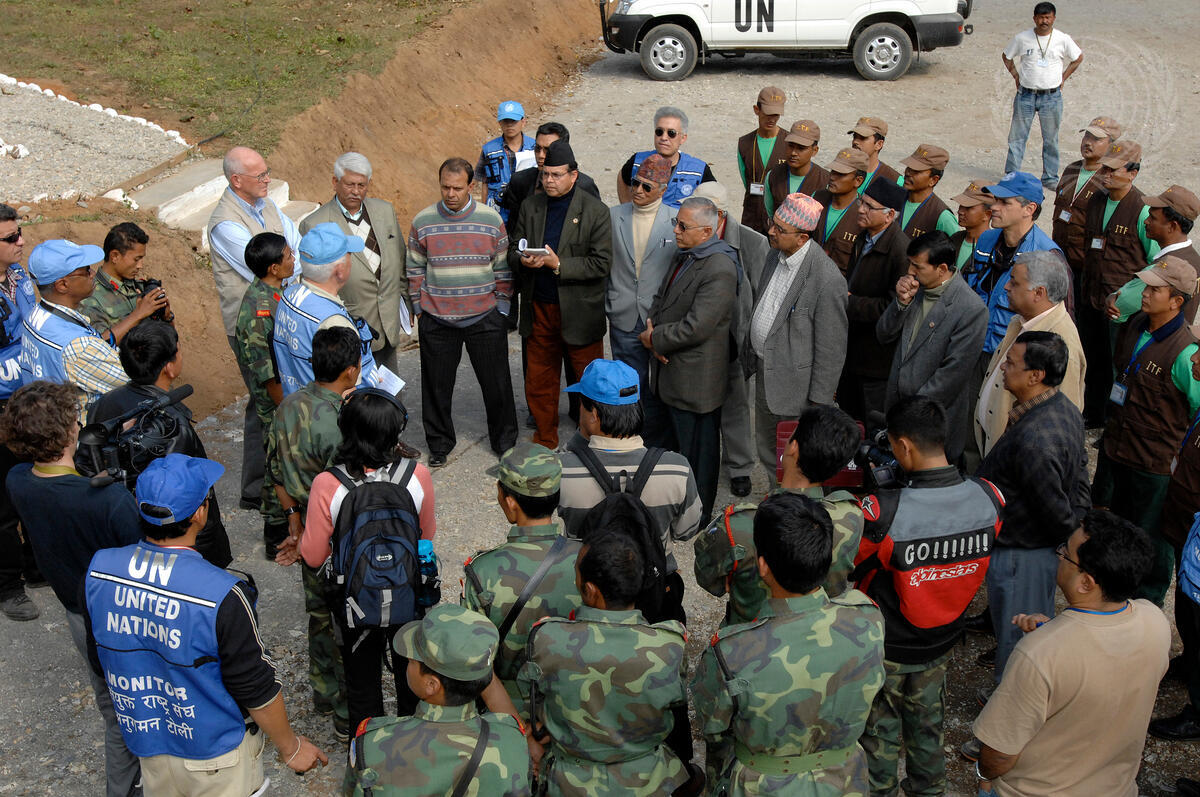 Civilian and military personnel of the United Nations Mission in Nepal (UNMIN) meet with representatives of the Nepal's Seven-Party Alliance.
