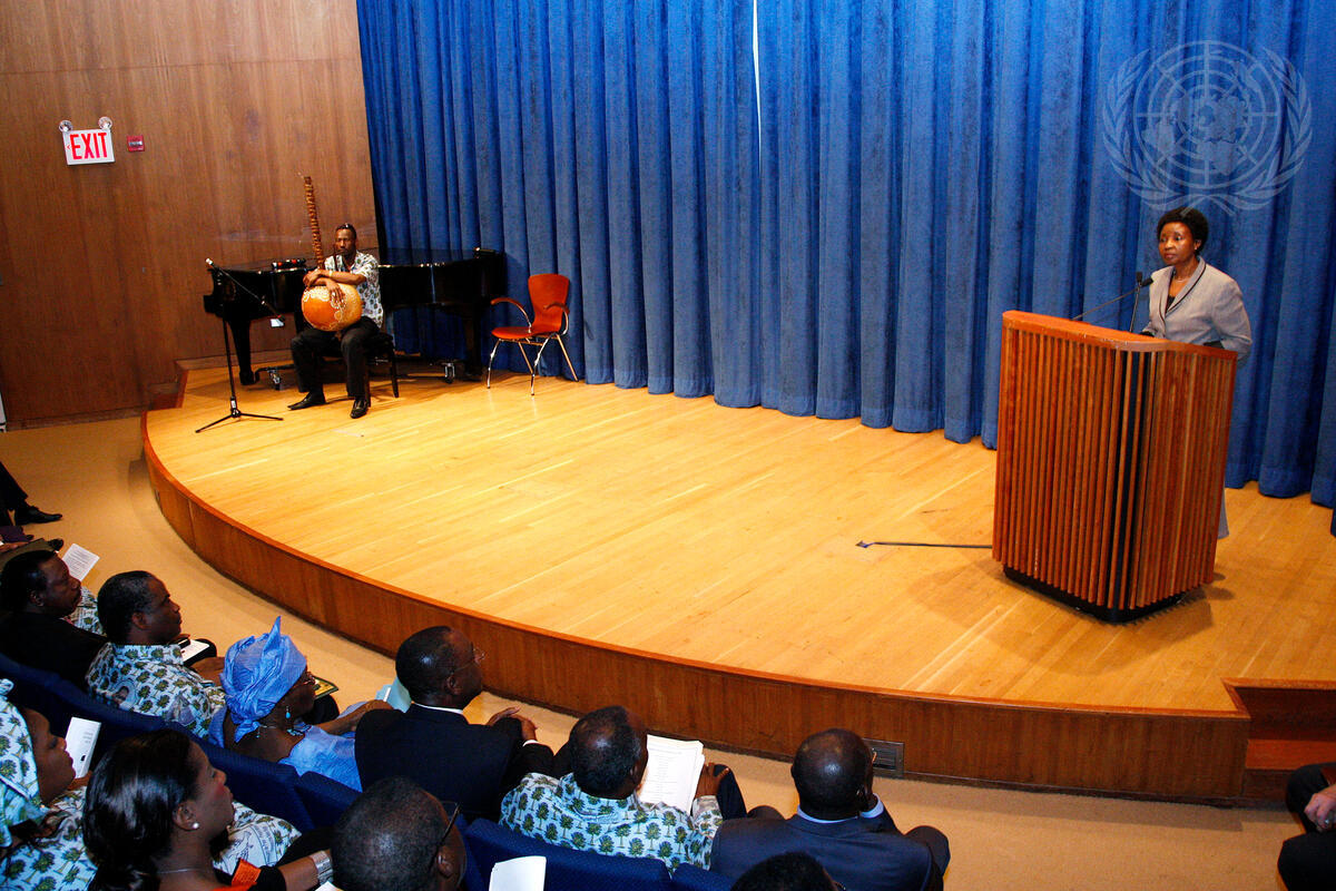 Deputy Secretary-General Asha-Rose Migiro addresses a memorial ceremony marking the tenth anniversary of the death of Alioune Blondin Beye, former Special Representative of the Secretary-General for Angola, killed in a plane crash in Côte d'Ivoire, along with seven other United Nations staff.