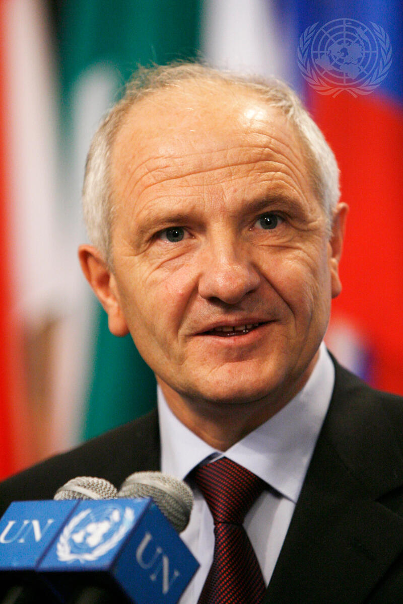 Fatmir Sejdiu, Representative of Kosovo, briefs the press following a meeting of the Security Council on the United Nations Interim Mission in Kosovo.