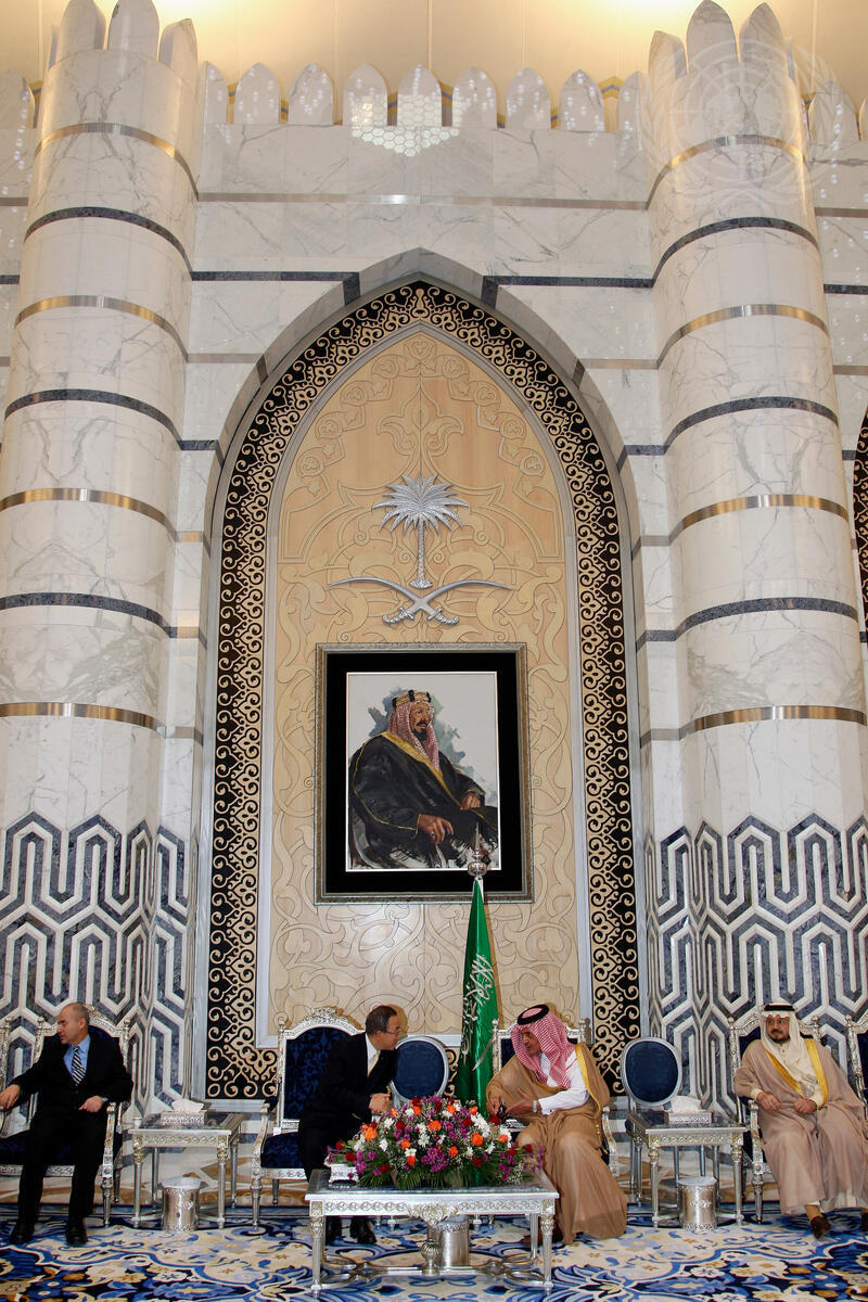 Secretary-General Ban Ki-moon (second from left) holds discussions with Saud Al-Faisal (second from right), Minister for Foreign Affairs of Saudi Arabia.