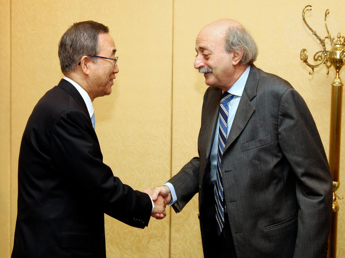 Secretary-General Ban Ki-moon (left) meets with Walid Jumblatt, Head of the Progressive Socialist Party of Lebanon.