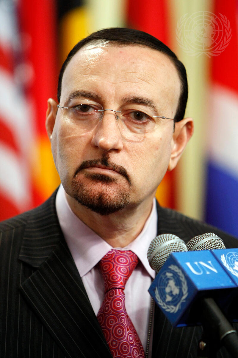 Hamid Al Bayati, Permanent Representative of Iraq to the United Nations, briefs correspondents following the Security Council consultations on the situation in his country.