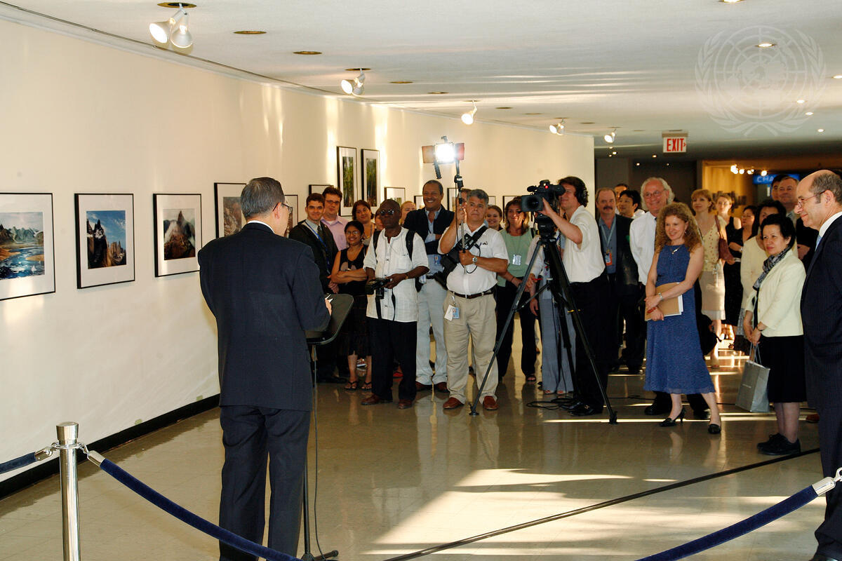 Secretary-General Ban Ki-moon addresses the opening photography exhibit: ""Our Changing Environment: Global Climate Changes,"" commissioned by the Department of Public Information.