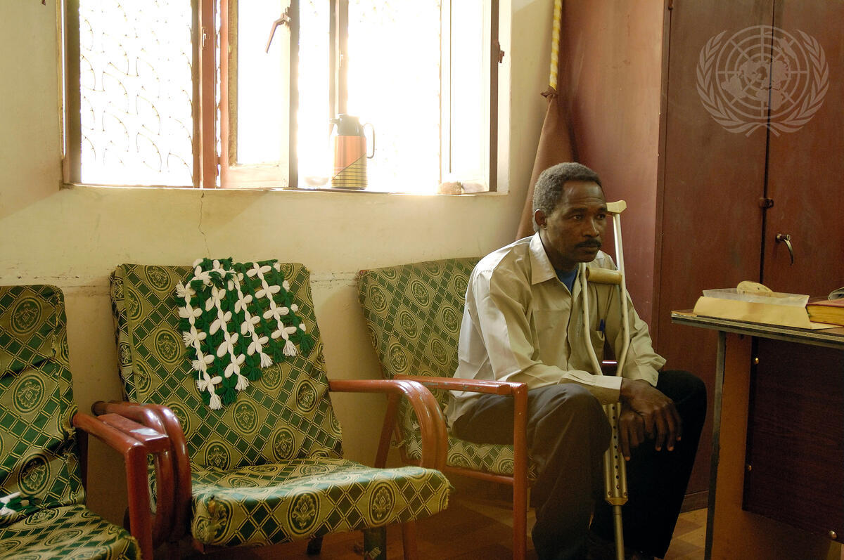 A disabled Popular Defense Force ex-combatant is pictured during the Disarmament, Demobilization and Reintegration (DDR) pre-registration exercise, in Khartoum, Sudan