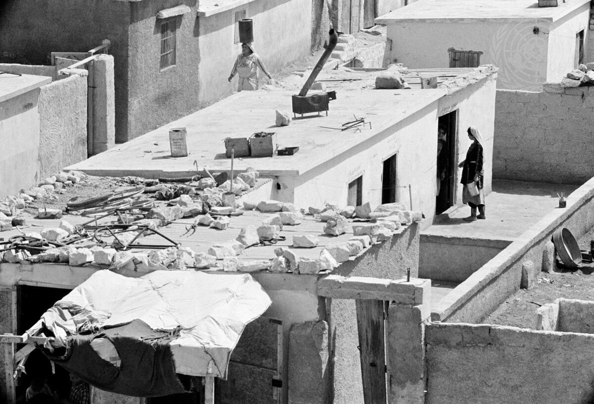 Refugee houses in the Amman New camp in Jordan. It is the first camp to be built by UNRWA and it shelters 15,601 refugees. Thirty-eight per cent of the Palestine refugees are sheltered in 57 UNRWA camps located in Jordan, Gaza, Lebanon and Syria.