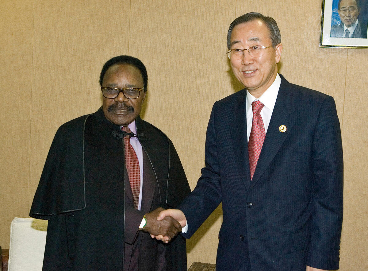 United Nations Secretary-General Ban Ki-moon (right) meets with Omar Bongo Ondimba, President of Gabon, in Addis Ababa.