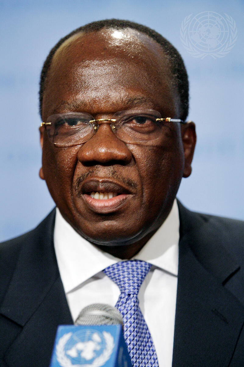 François Lonsény Fall, Special Representative of the Secretary-General for Somalia and Head of the United Nation Political Office in Somalia (UNPOS), speaks to news reporters outside the Security Council chamber, at UN Headquarters in New York.