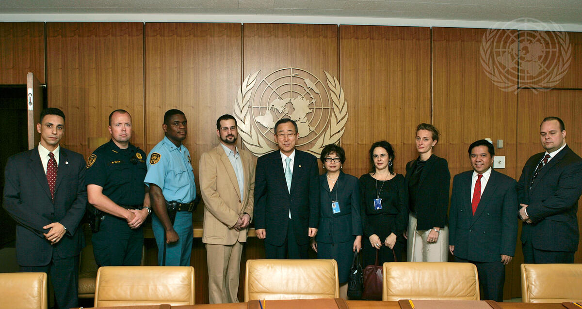 Secretary-General Ban Ki-moon (centre) meets at UN Headquarters in New York with survivors of the 19 August bombing of the United Nations Offices in Baghdad.