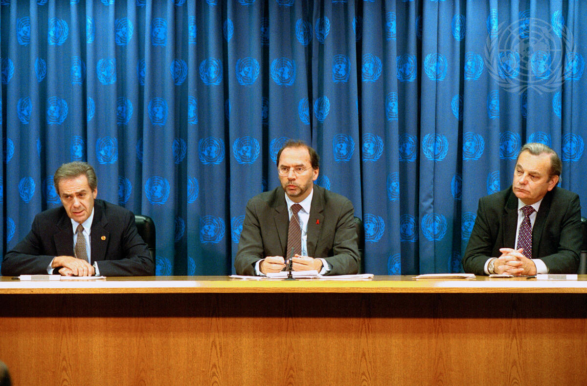 A new initiative of major foundations to expand the scope of mother and child HIV programmes was the direct result of the Secretary-General's call to action and of the special session of the General Assembly, Dr. Peter Piot (centre), Executive Director of the Joint United Nations Programme on HIV/AIDS (UNAIDS), told correspondents at a Headquarters press conference this morning.