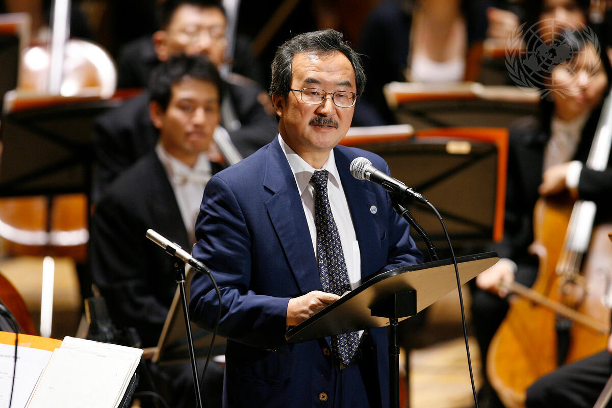Kiyotaka Akasaka, Under-Secretary-General for Communications and Public Information, speaks at the sixty-second United Nations Day Concert, featuring the Seoul Philharmonic Orchestra conducted by Chung Myung-Whun, at UN Headquarters in New York.
