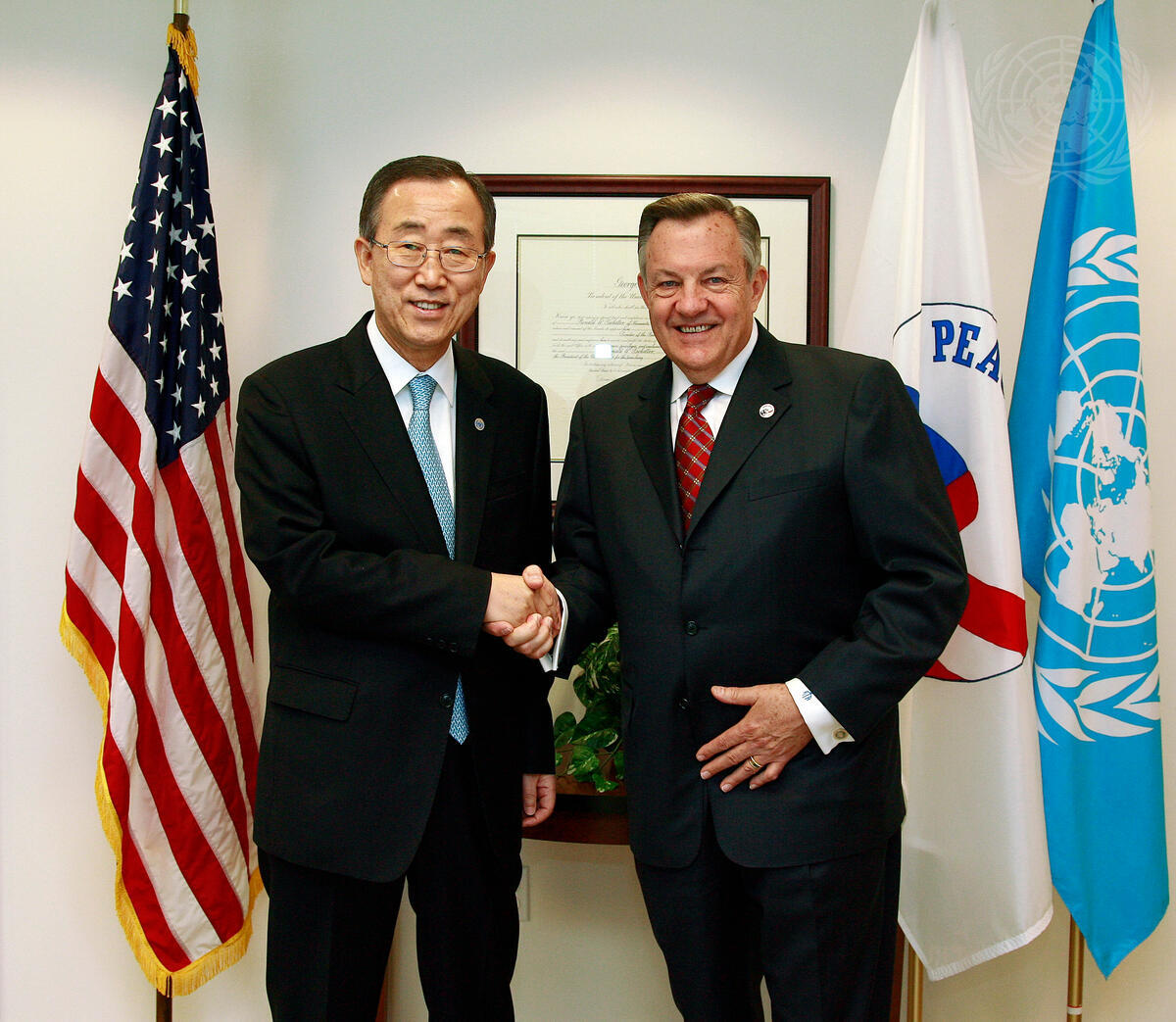 Secretary-General Ban Ki-moon (left) meets with Ron Tschetter, Director of the United States Peace Corps.
