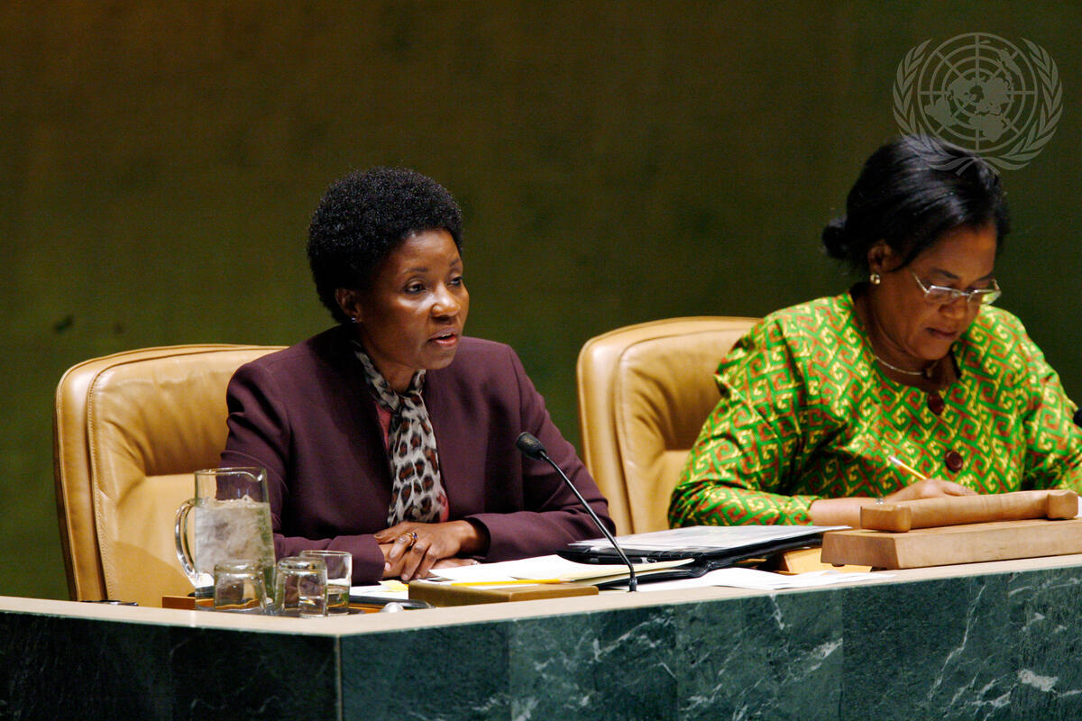 Deputy Secretary-General Asha-Rose Migiro (left) addresses the signing ceremony of the new United Nations Convention on the Rights of Persons with Disabilities, which aims to secure the rights of some 650 million persons with disabilities around the world. More than 75 countries participated in the signing ceremony, the most for the opening of any treaty. The event, held in the UN General Assembly Hall, at UN Headquarters in New York, was also attended by over 350 representatives of disability organizations from around the world, who were instrumental in the negotiation of the treaty.