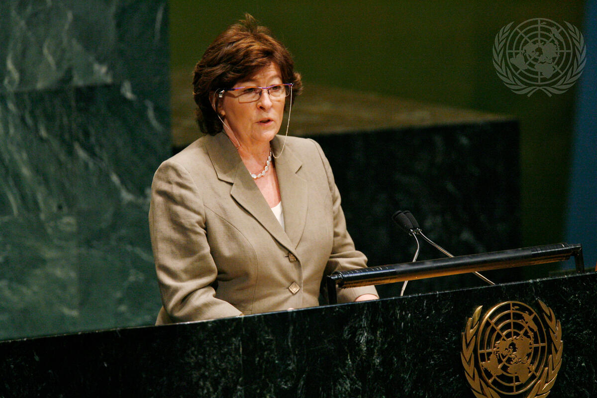 Louise Arbour, United Nations High Commissioner for Human Rights, addresses the signing ceremony of the new United Nations Convention on the Rights of Persons with Disabilities, which aims to secure the rights of some 650 million persons with disabilities around the world. More than 75 countries participated in the signing ceremony, the most for the opening of any treaty. The event, held in the UN General Assembly Hall, at UN Headquarters in New York, was also attended by over 350 representatives of disability organizations from around the world, who were instrumental in the negotiation of the treaty.