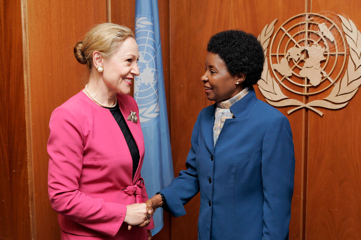 Deputy Secretary-General Asha-Rose Migiro (right) meets with Benita Ferrero-Waldner, European Union Commissioner for External Relations and European Neighbourhood Policy, at UN Headquarters in New York.
