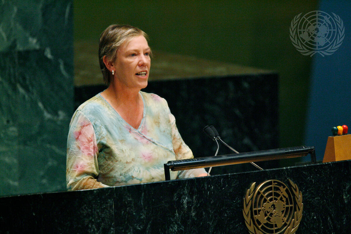 Ruth Suzanne Dyson, Minister for Disability Issues of New Zealand, addresses the signing ceremony of the new United Nations Convention on the Rights of Persons with Disabilities, which aims to secure the rights of some 650 million persons with disabilities around the world. More than 75 countries participated in the signing ceremony, the most for the opening of any treaty. The event, held in the UN General Assembly Hall, at UN Headquarters in New York, was also attended by over 350 representatives of disability organizations from around the world, who were instrumental in the negotiation of the treaty.