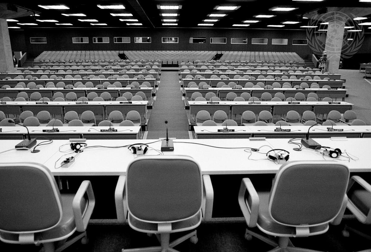 A view of Plenary Hall as it was prepared on 2 June, just one day before the start of the Conference and before delegates arrive at Rio Centro.