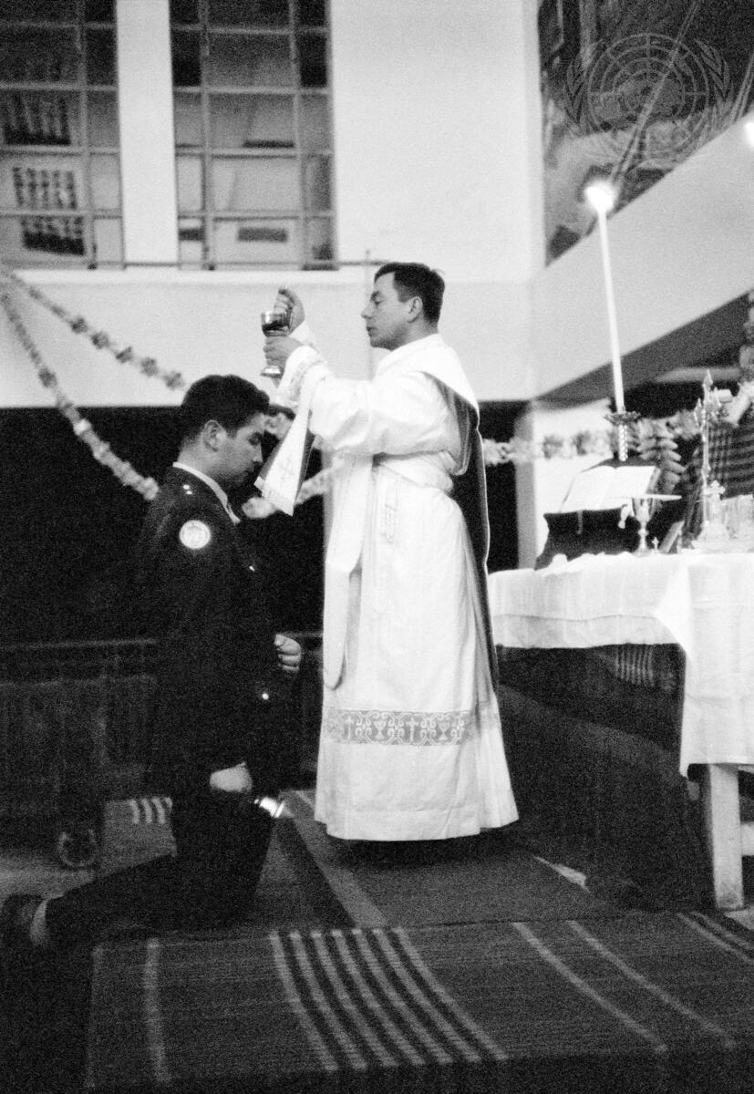 Since December 15th, preparations had been going on in each contingent of the U.N. Emergency Force (UNEF) in Port Said for a series of Christmas ceremonies. The Danes, Finns, Swedes and Norwegians received Christmas trees from their countries and decorated them; the Colombians built the traditional manger. On Christmas Eve, the groups held separate festivities in their respective camps and attended religious services; the Colombians had a midnight mass and an early mass on the 25th. And yesterday, the Scandinavians held, at the football stadium, a special ceremony marking the second day of Christmas.