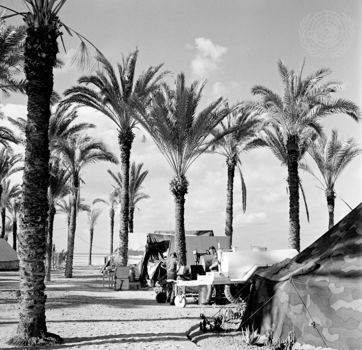 A partial view of the Colombian camp in El Arish. Colombian troops are in position on the road from Ismailia to El Auja near the Egyptian-Israeli demarcation line. February 1957.