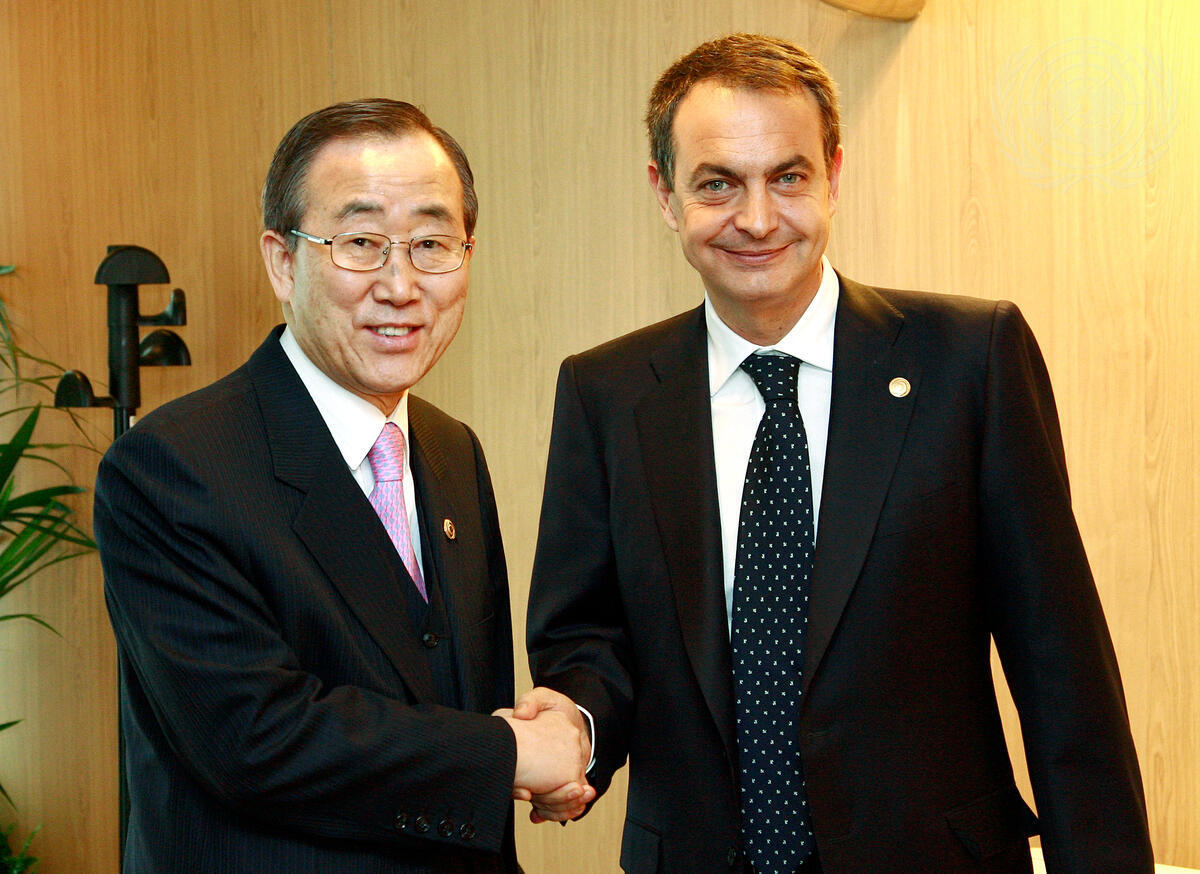 Secretary-General Ban Ki-moon (left) meets with José Luis Rodríguez Zapatero, Prime Minister of Spain.