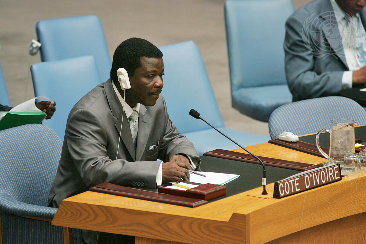 Guillaume Niagri Bailly, Counsellor of the Permanent Mission of Côte d'Ivoire to the United Nations, listens to proceedings during the Security Council meeting extending by six months the mandate of the United Nations Operation in Côte d'Ivoire (ONUCI).
