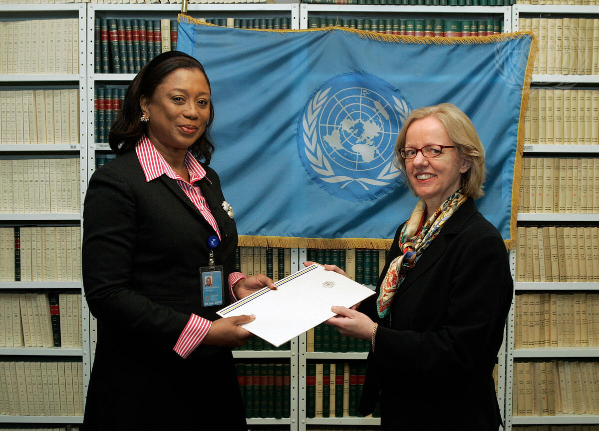 Gayle Francis-Vaughan (left), Chargé d'Affaires of the Permanent Mission of Barbados to the United Nations, accompanied by Annebeth Rosenboom, Chief of the Treaty Sections of the Office of Legal Affairs, signed the Comprehensive Nuclear-Test-Ban Treaty (New York, 10 September 1996) and deposited an instrument of ratification.