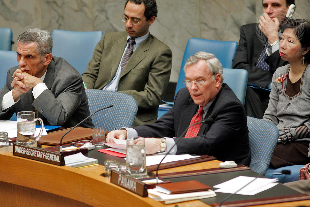 B. Lynn Pascoe (right), Under-Secretary-General for Political Affairs, briefs the Security Council on the situation in the Middle-East, including the question of Palestine.