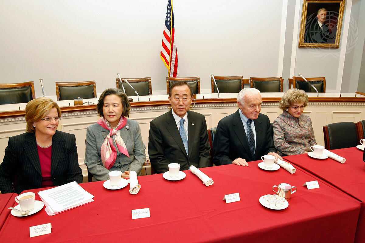 Secretary-General Ban Ki-Moon (centre) meets Representative Tom Lantos (D-CA) (second from right), Chairman of the House Foreign Affairs Committee and Representative Ileana Ros-Lehtinen (R- FL) (left), ranking Republican of the Committee, at the Rayburn House Office Building, in Washington, D.C. Also in the picture are the Secretary-General's wife Yoo Soon-taek (second from left), and Mrs. Lantos (right).