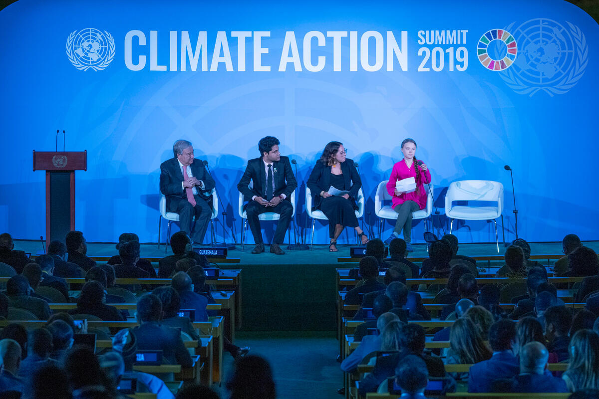 "Greta Thunberg (right), Climate Activist, speaks at the opening of the UN Climate Action Summit 2019.