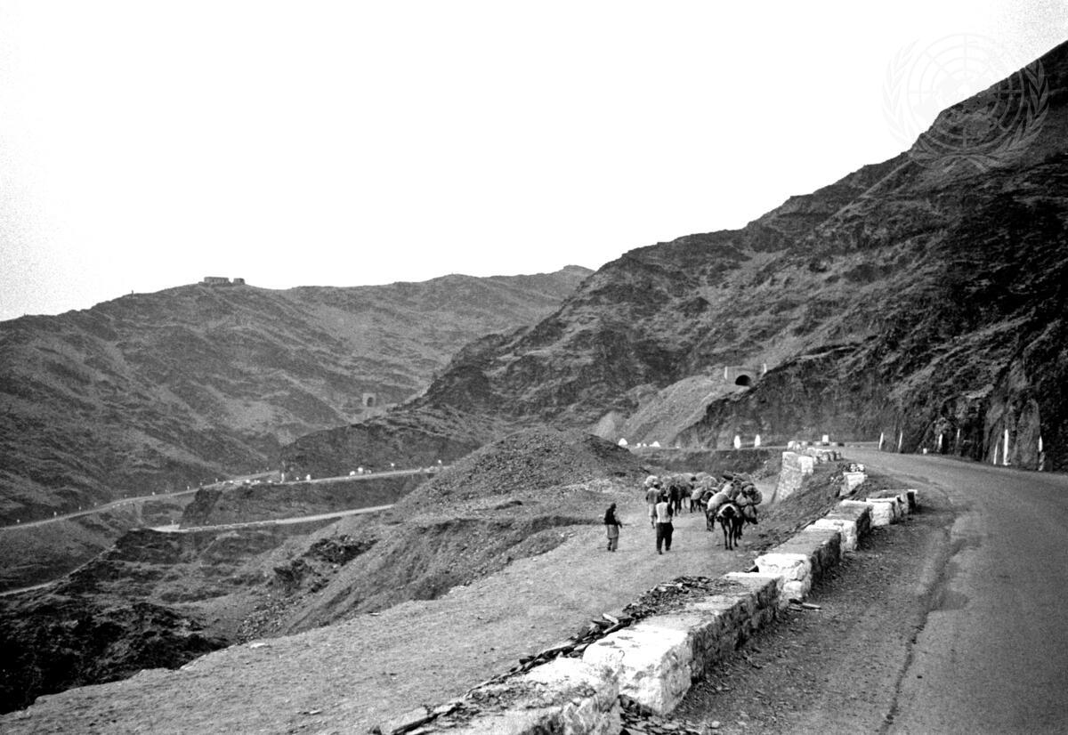 A section of the road through the Khyber Pass in Afghanistan on the A-1 Route of the Asian Highway.