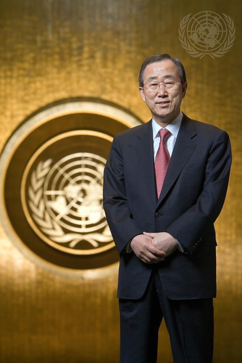 Portrait of United Nations Secretary-General Ban Ki-moon in the General Assembly Hall, at UN Headquarters in New York.