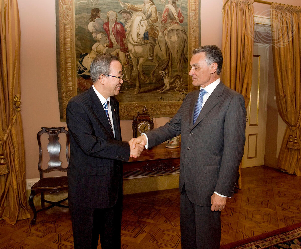 Secretary-General Ban Ki-moon (left) meets with Aníbal António Cavaco Silva, President of Portugal, at the Palácio de Belém in Lisbon, Portugal.