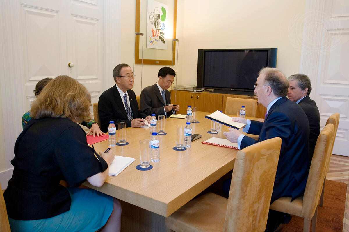 Secretary-General Ban Ki-moon (third from left, left side of table) meets with Jorge Sampaio, former President of Portugal, at the Casa de Regalo in Tapada das Necessidades in Lisbon, Portugal.