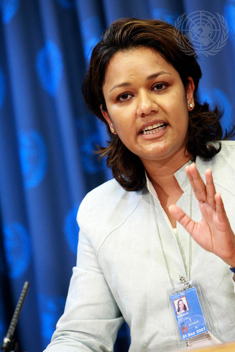Anika Rahman, President of Americans for UN Population Fund (UNFPA) briefs the media on the launch of the 2007 State of the World Population Report, at UN Headquarters in New York.