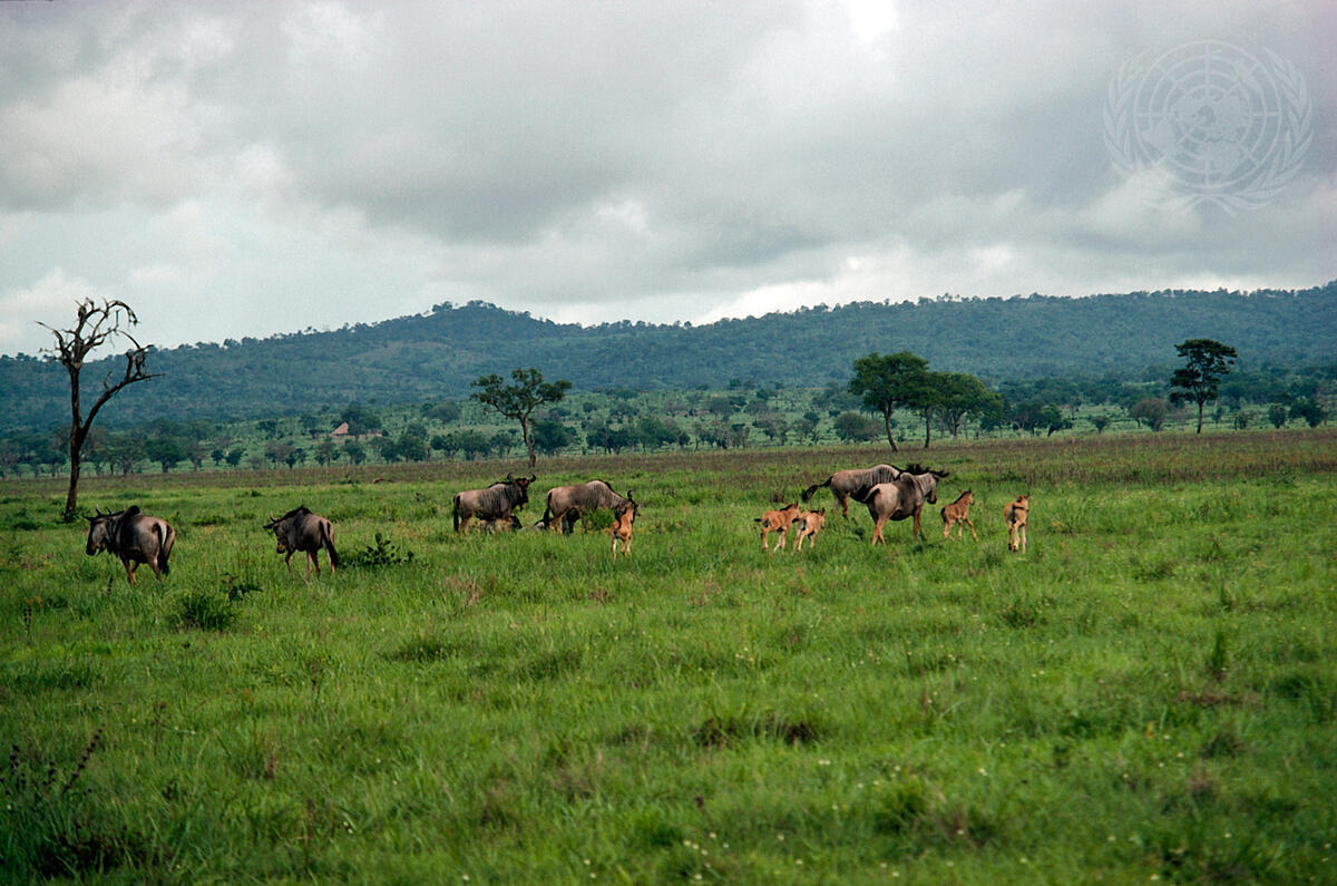 Protected wild wildebeests in the Mikumi National Park in Tanzania. [No exact date]