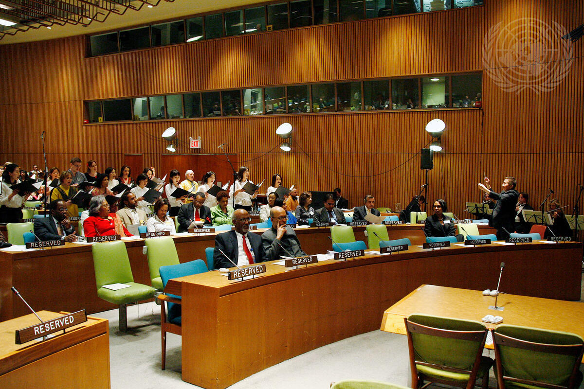 The Harmony Basket and UN Singers, under the direction of maestro Mamoru Takahara of the New York Symphonic Ensemble perform during the 2008 United Nations Population Award ceremony.
