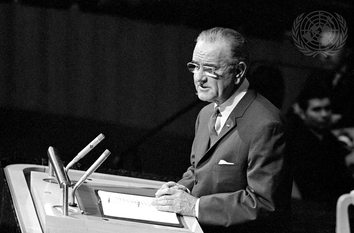 President Lyndon B. Johnson of the United States addressing the Assembly.